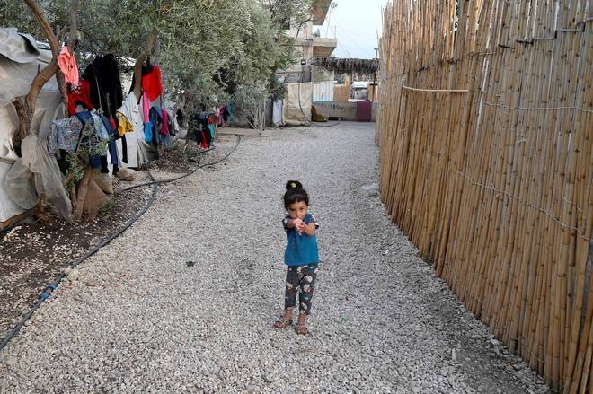 Uma jovem posa para uma foto do lado de fora da tenda onde vive, dentro de um campo de refugiados sírios em Akkar, no Líbano