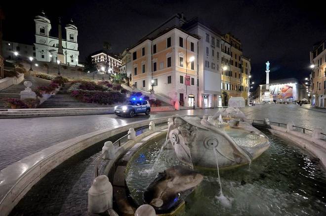 Imagem de Roma, na Itália, durante o toque de recolher noturno que se inicia às 22h e tem como objetivo conter o número de contágios da covid-19 na região
