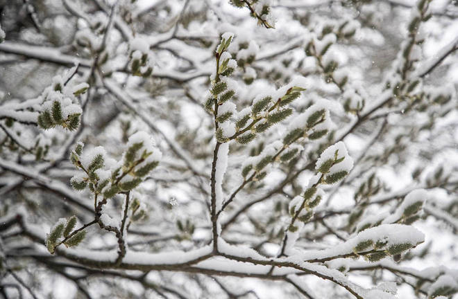 A neve cobre uma árvore em Domodedovo, nos arredores de Moscou, na Rússia, após uma queda significativa nas temperaturas da região