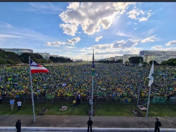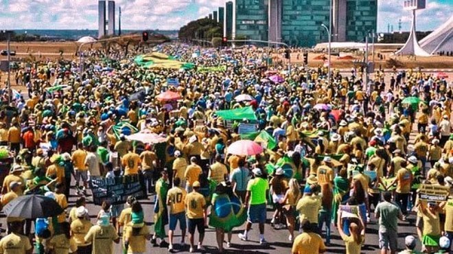Vários admiradores e apoiadores de Bolsonaro estavam usando a camisa da seleção brasileira de futebol