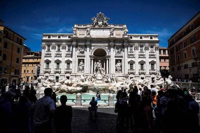 Pessoas visitam a Fontana di Trevi em Roma, na Itália