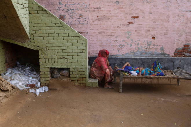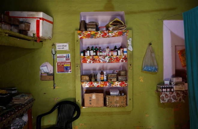 Um ex-funcionário de um hospital indiano sem formação médica dirige uma pequena clínica sem licença, atendendo pacientes com dificuldades respiratórias e verificando seus níveis de oxigênio enquanto eles deitam em camas no chão de lama