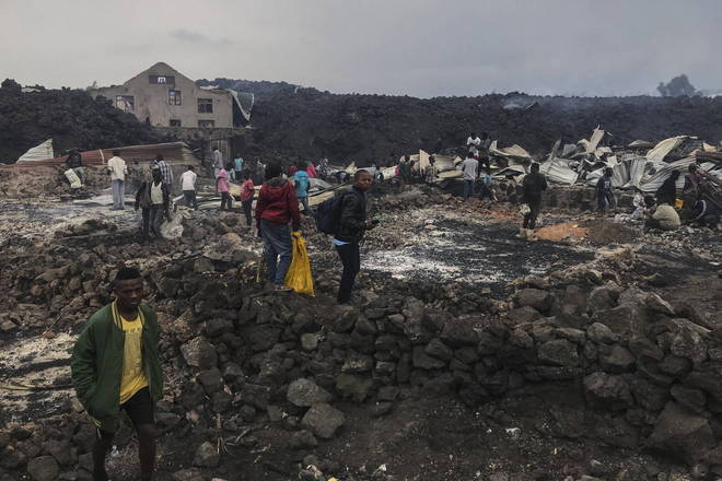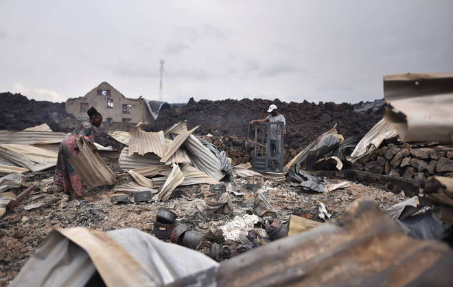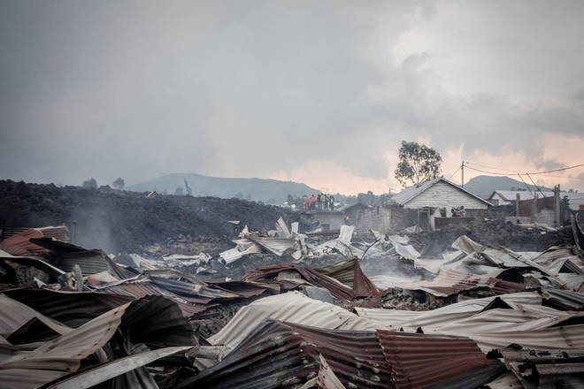 Diversas aldeias perto da cidade de Goma foram engolfadas pela lava, que queimou as casas