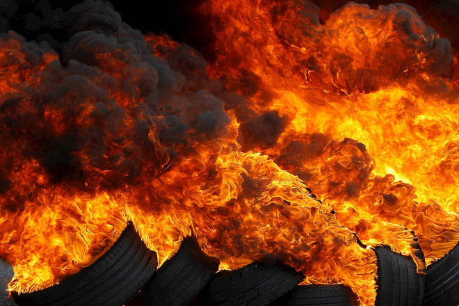 Na Espanha, trabalhadores do setor náutico queimaram pneus em protesto por emprego para os estaleiros, os trabalhadores que reparam e consertam navios