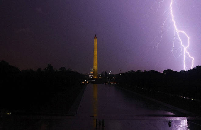 Em Washington, uma tempestade ilumina o céu perto da sede do governo dos EUA