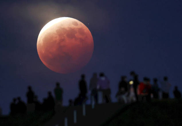 Cidadãos acompanham a superlua de sangue no Parque Moerenuma, em Sapporo, no Japão