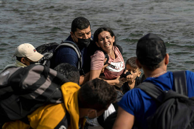 Uma mulher venezuelana atravessa o Rio Grande, divisa entre México e Estados Unidos, onde procura pedir asilo
