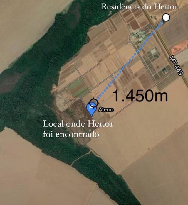 Na véspera de Natal, Heitor Maciel foi visto próximo à casa da fazenda, às margens da MT-449 e perto da Fundação Rio Verde. Os cães farejaram o trajeto casa até a rodovia, e não avançaram o que indicaria que o menino teria, supostamente, seguido até a pista. Segundo os bombeiros, uma pessoa que passou pelo local, no horário que ocorreu o fato relatou que viu a criança às margens da MT-449.