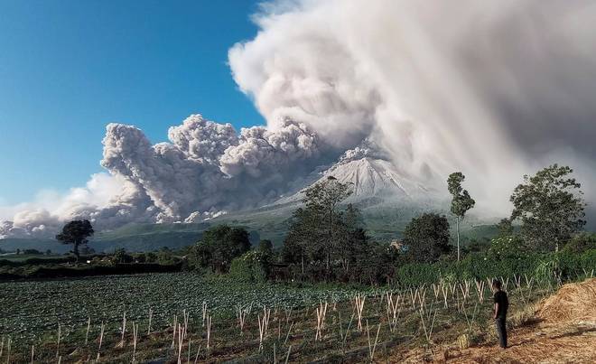A Agência Geológica da Indonésia liberou imagens da erupção do vulcão Sinabung