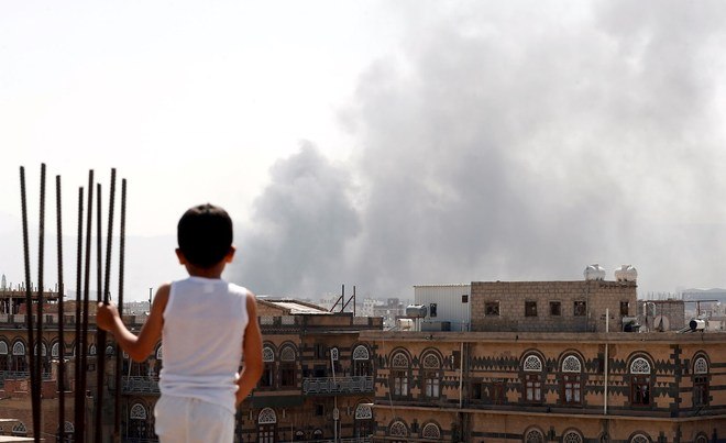 Nuvens de fumaça são vistas em local de ataques aéreos liderados pelos sauditas em Sanaa, no Iêmen