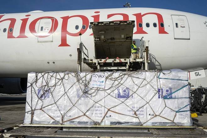 O primeiro carregamento de vacinas contra covid-19, da Oxford/AstraZeneca, chegou neste domingo a Addis Ababa, capital da Etiópia. Os imunizantes foram enviados por meio da iniciativa Covax Facility, liderada pela OMS (Organização Mundial da Saúde)