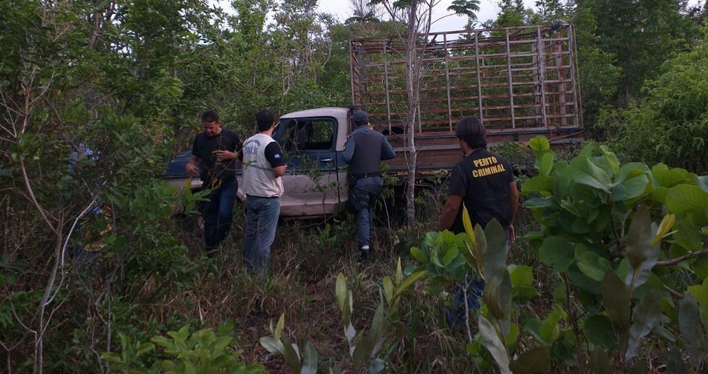 Os policiais receberam informações que a caminhonete estaria abandonada no local indicado e foram verificar. O veículo estava abandonado escondido no matagal e o corpo da vítima estava próximo