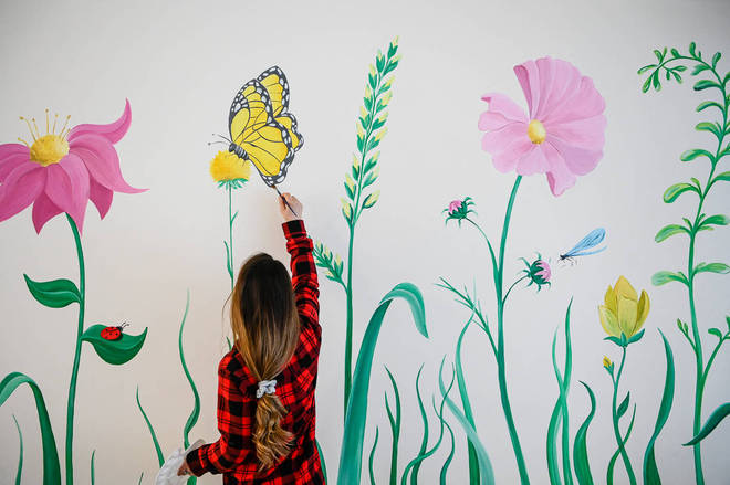 O artista Mimoza Rraci pinta as paredes do hospital infantil recém-inaugurado na cidade de Pristina, Kosovo