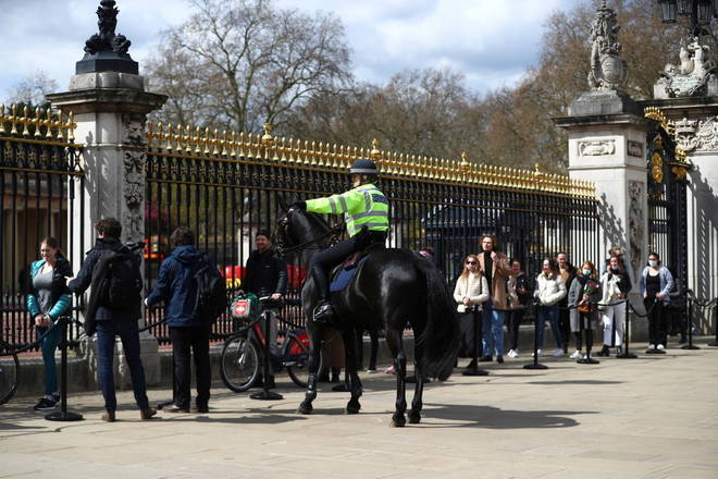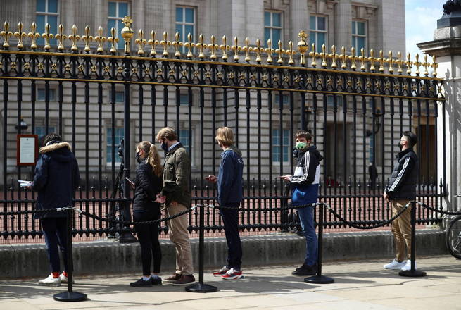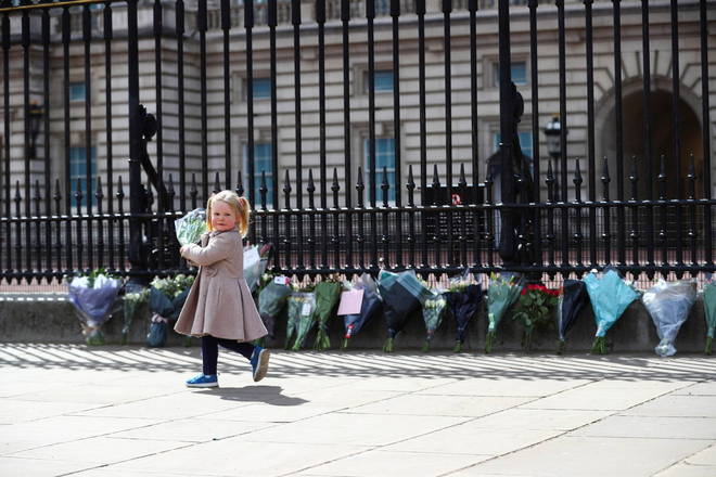 Além de tirar fotos, britânicos também deixaram flores e bilhetes no portão do Palácio