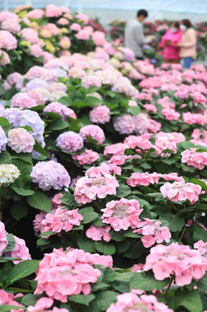 Hortênsias estão em plena floração no Parque Hueree, na ilha turística de Jeju, a maior da Coreia do Sul
