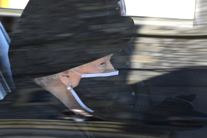 A rainha foi fotografa ainda no carro e estava usando duas máscaras, proteção essencial contra o novo coronavírus